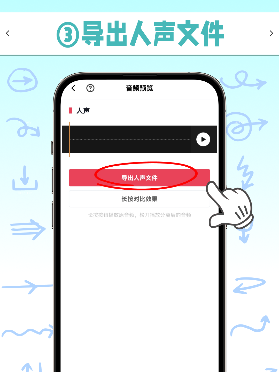 ▪️找不到音乐伴奏?直接扒歌曲里的伴奏存到K歌APP,跟着练歌超方便,还能单独把原唱人声提出来学