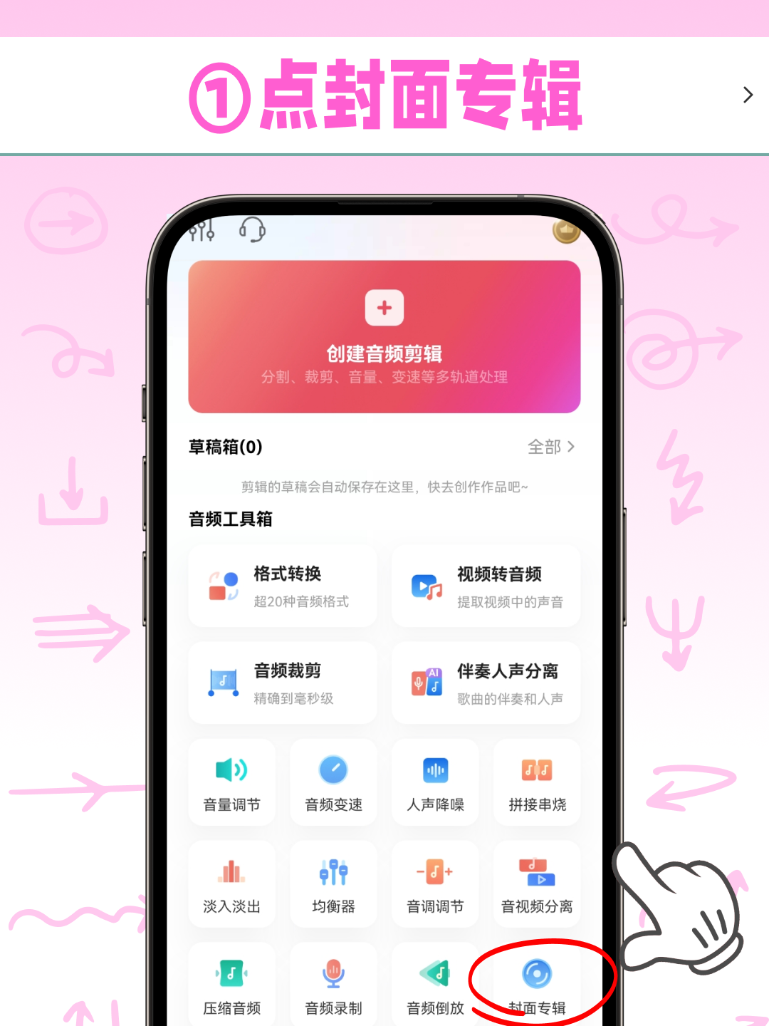 🔺 打开音频快剪,直接点「封面专辑」功能,无需复杂步骤