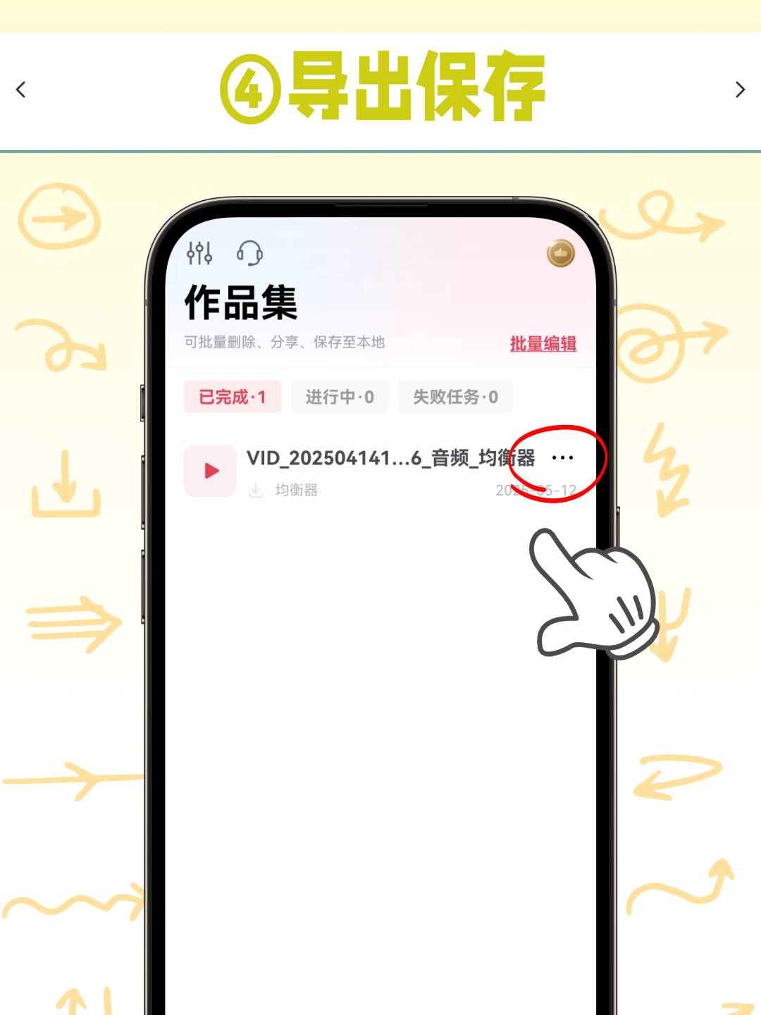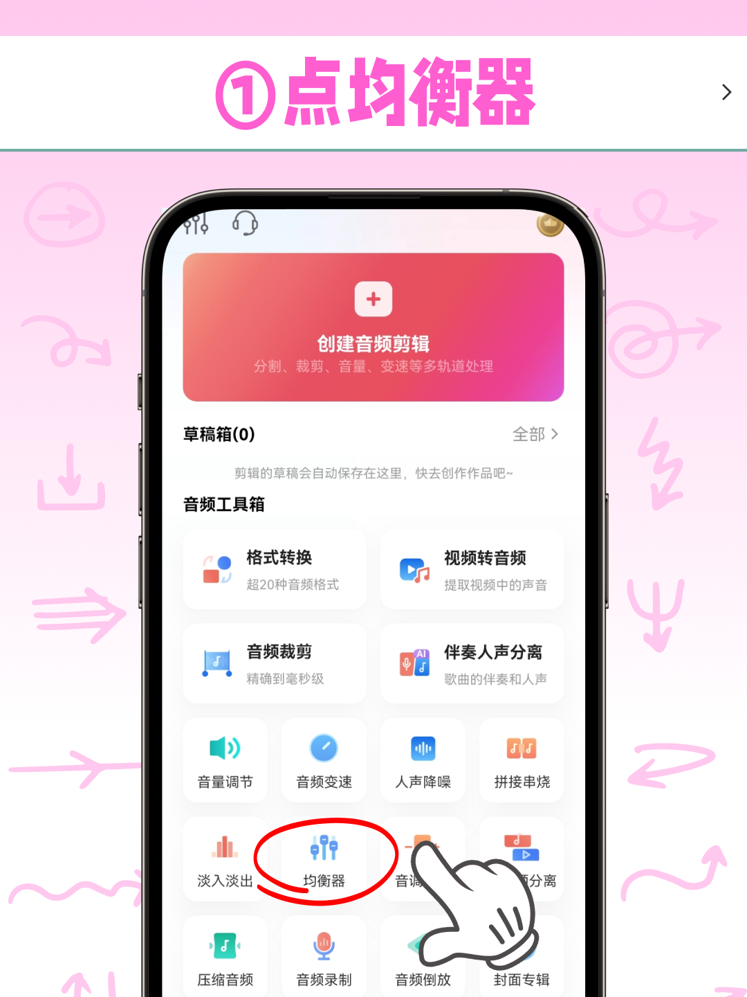 💎打开音频快剪app,点“均衡器”,可直接导入本地音乐,也能从视频中提取音频,网易云保存的歌曲或其他音乐播放器的文件都支持;